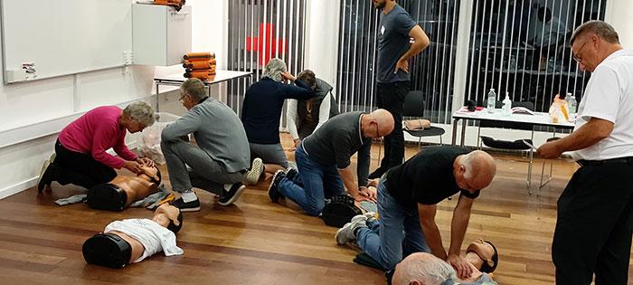 Fire timer med mange praktiske øvelser, højt humør og stort engagement. Vi gik derfra godt rustet til at hjælpe, hvis det værst tænkelige skulle ske.